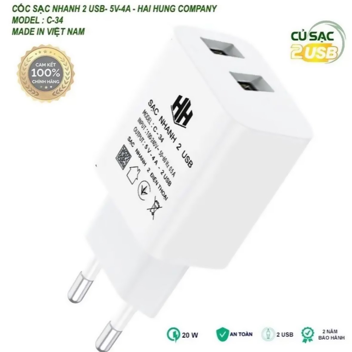 CỦ SẠC 2 CỔNG USB - MODEL : C-34