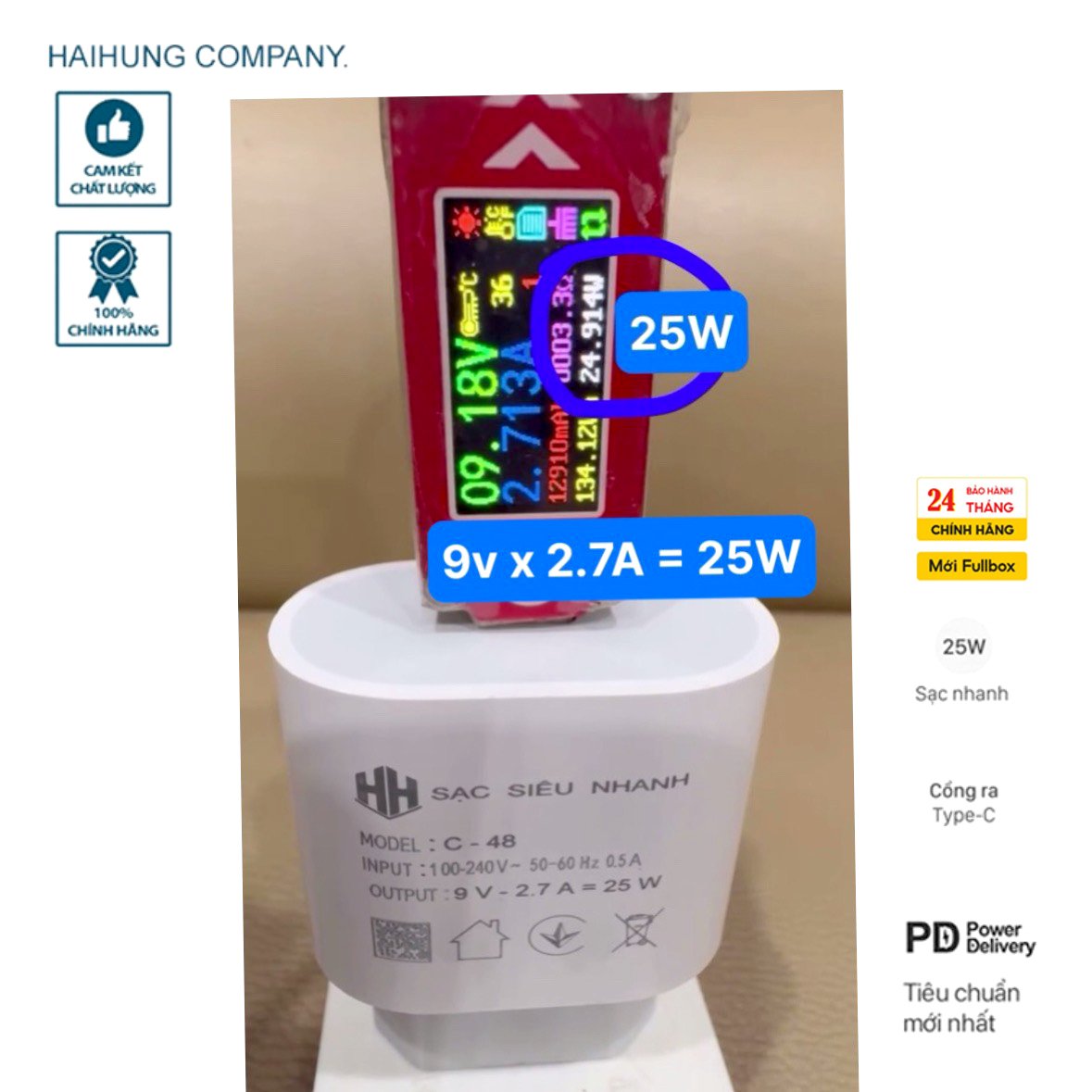 CỦ SẠC SIÊU NHANH 25W- MODEL : C-48