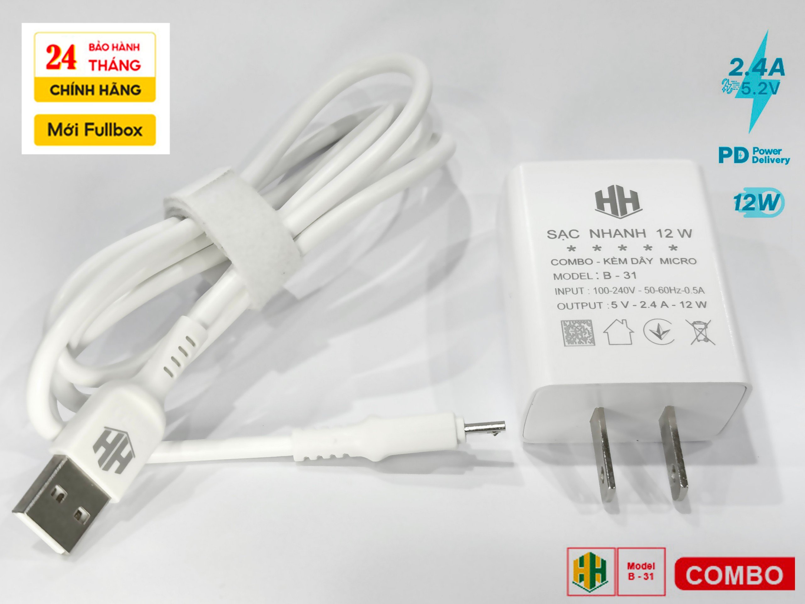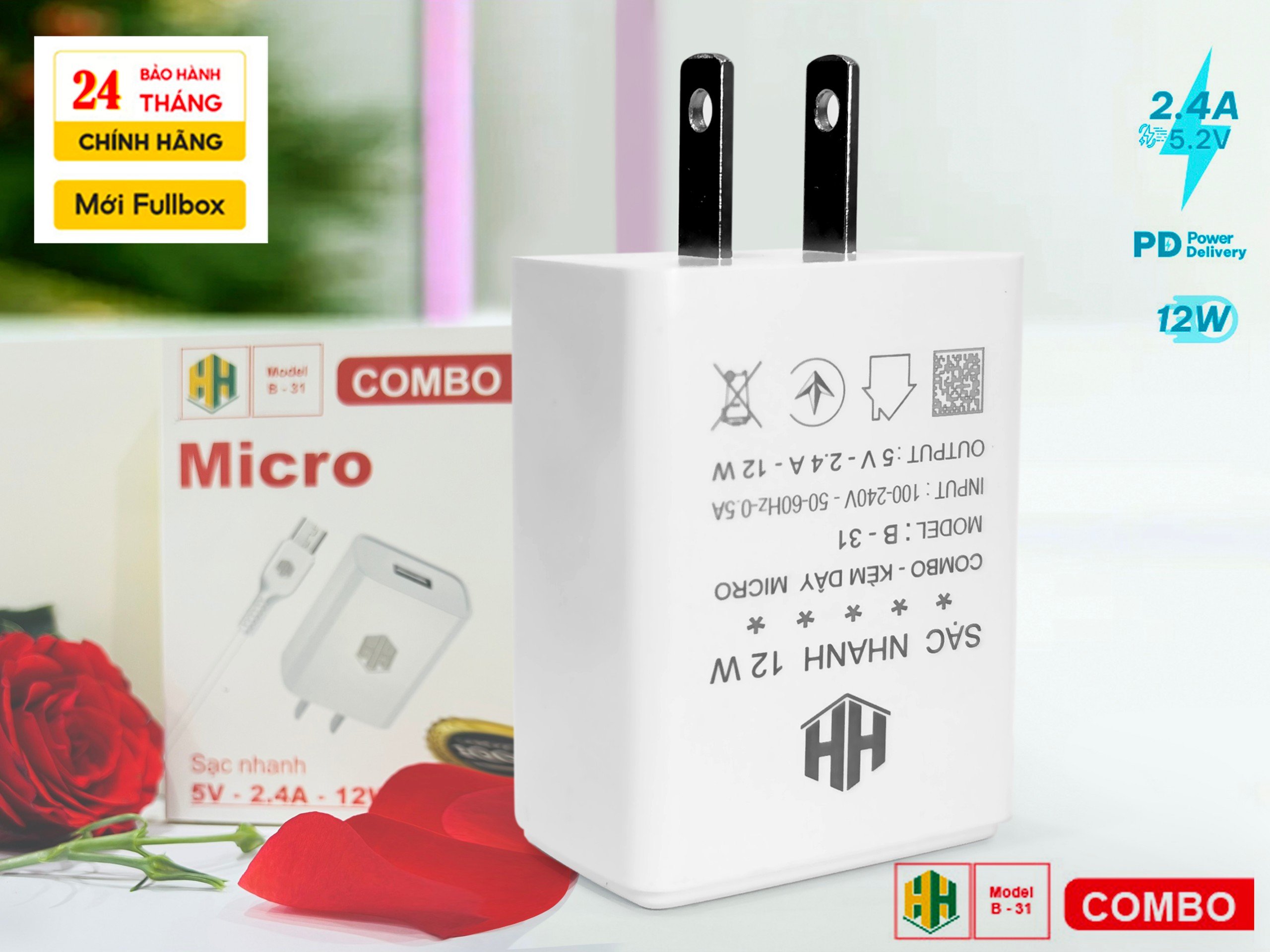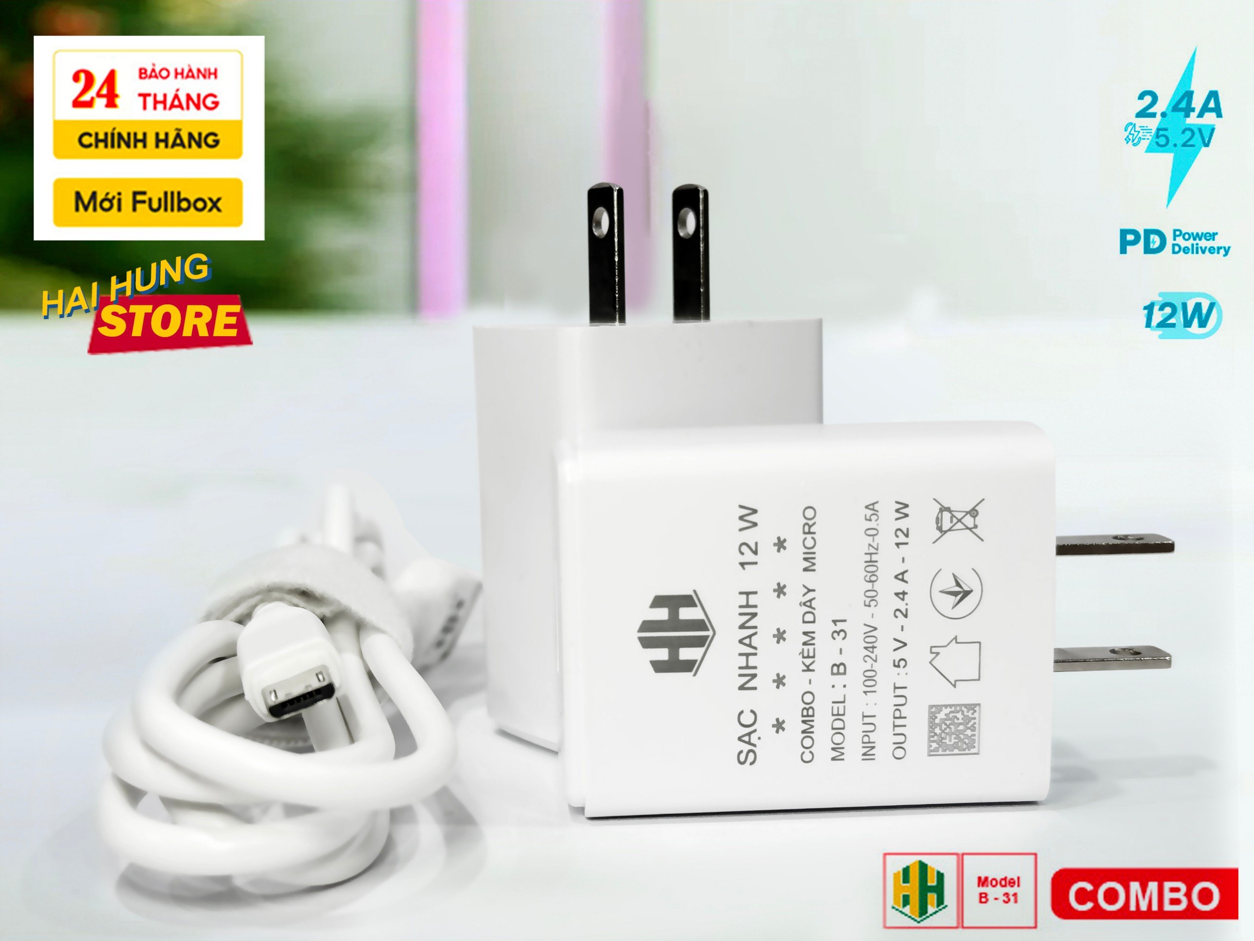 SẠC BỘ COMBO - 2.4A + KÈM DÂY MICRO - MODEL : B-31