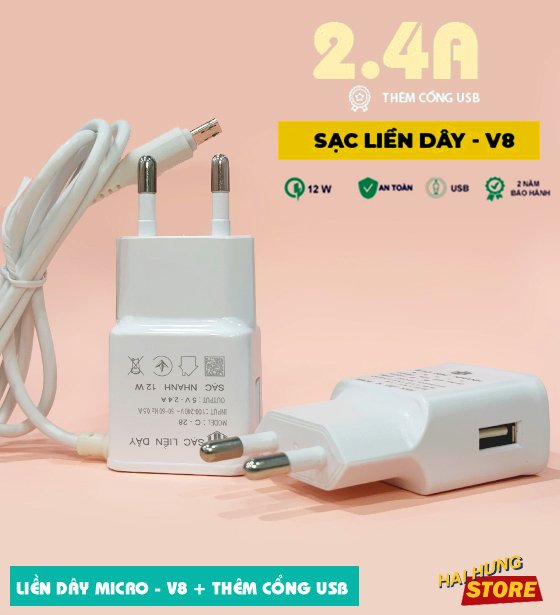 SẠC LIỀN DÂY - MICRO - 2.4A - MODEL : C-28