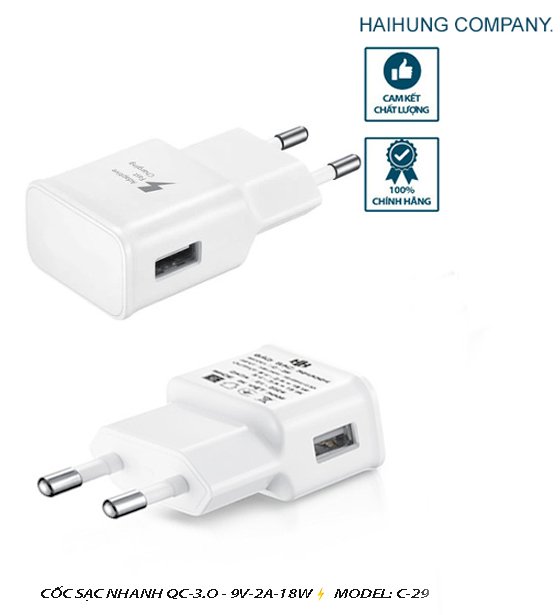 SẠC NHANH 18W- QC3.0 - BÁO SẠC NHANH - MODEL: C-29